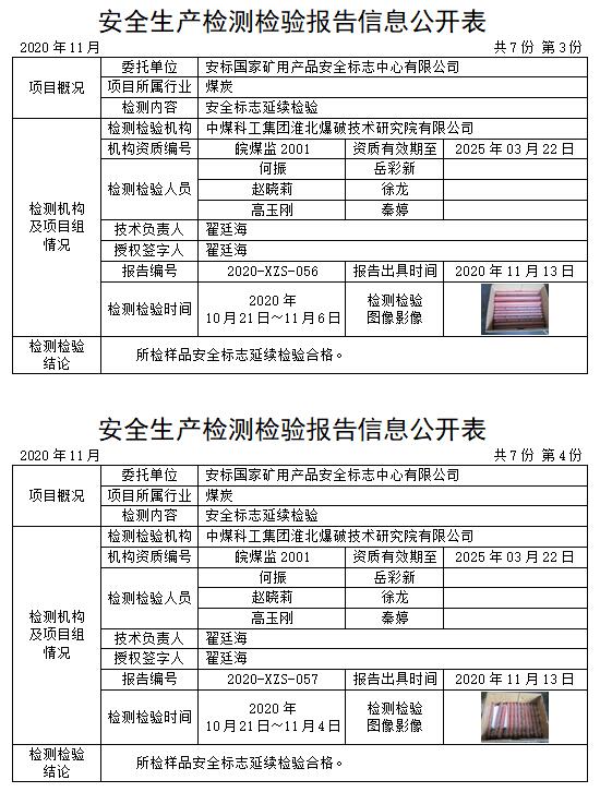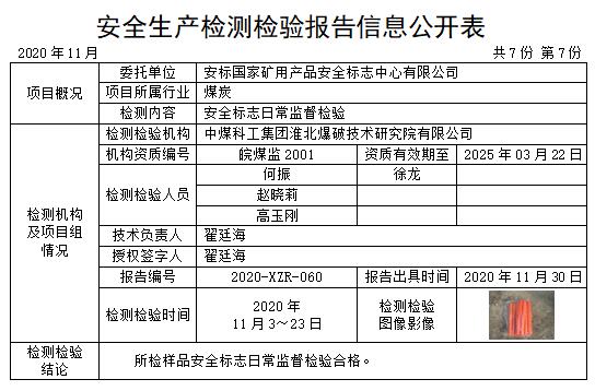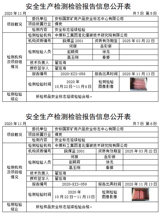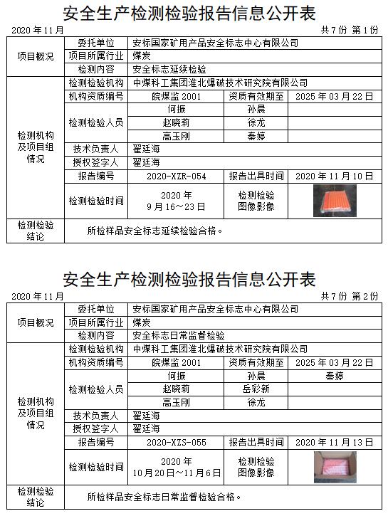安全生產檢測檢驗報告信息公開表(2020年11月)