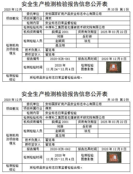 安全生產(chǎn)檢測檢驗(yàn)報(bào)告信息公開表(2020年12月)