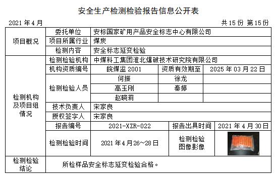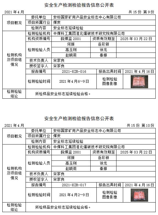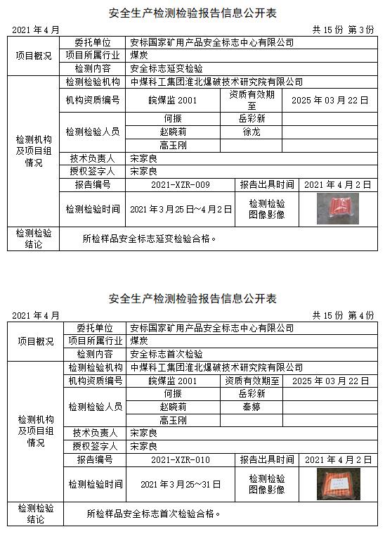 安全生產(chǎn)檢測檢驗報告信息公開表(2021年4月)