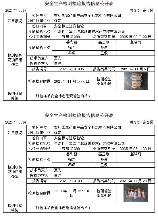 安全生產(chǎn)檢測(cè)檢驗(yàn)報(bào)告信息公開表(2021年11月)