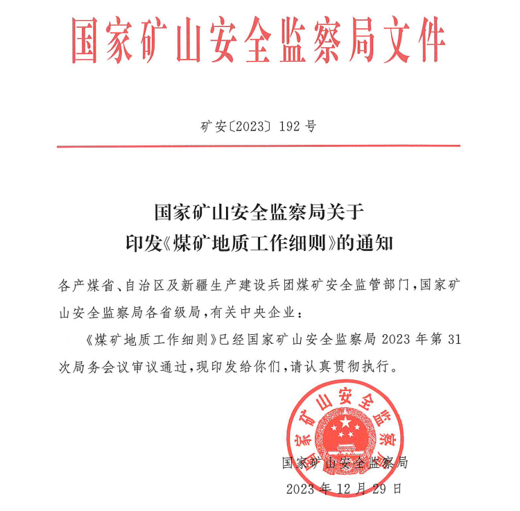 中國煤科西安研究院牽頭修訂的《煤礦地質(zhì)工作細則》印發(fā)執(zhí)行