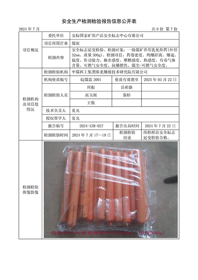 安全生產檢測檢驗報告信息公開表(2024年7月份)