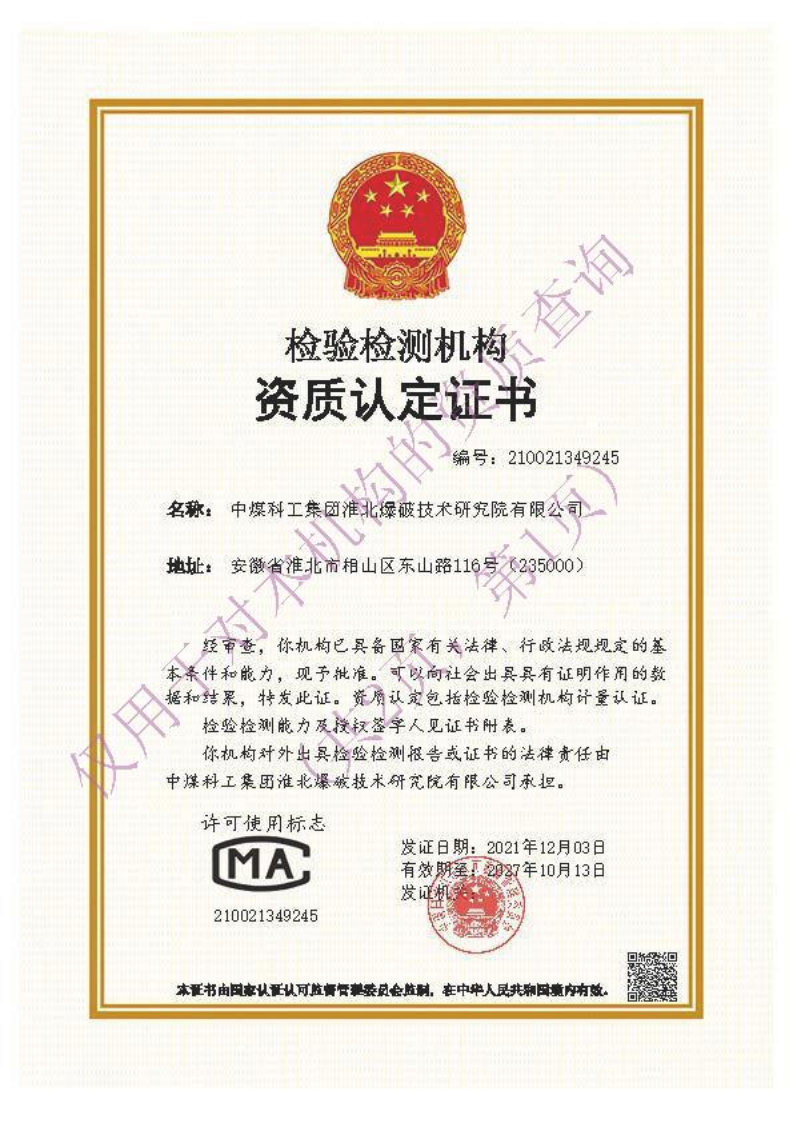 實(shí)驗(yàn)室的主要檢驗(yàn)產(chǎn)品是用于民用爆破工程的炸藥、雷管、索類(lèi)以及相關(guān)的爆破器材,出具的檢驗(yàn)報(bào)告,具有法律效力。
