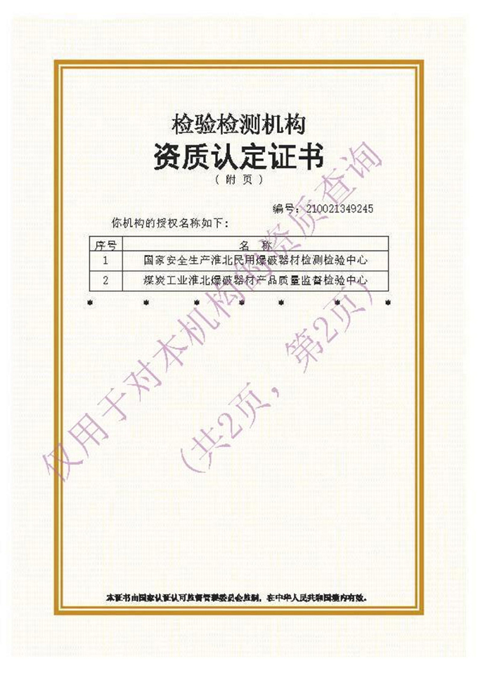 安全生產(chǎn)檢測(cè)檢驗(yàn)機(jī)構(gòu)資質(zhì)證書(shū),證書(shū)編號(hào):皖煤監(jiān)2001