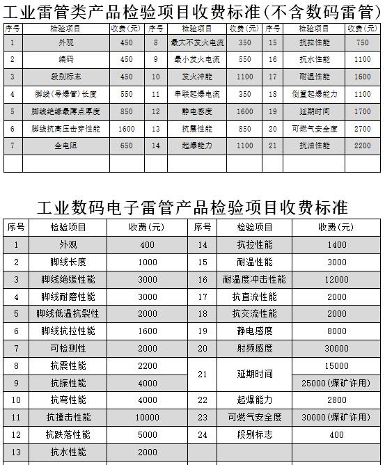 檢測檢驗收費標準按現行自律性收費標準中相應檢驗項目要求執(zhí)行,各檢驗項目單項收費標準如下: